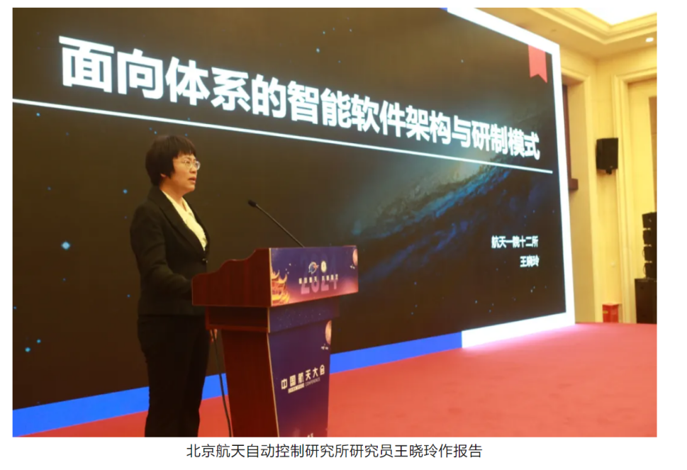 北京航天自動控制研究所研究員王曉玲作題為《面向體系的智能軟件架構與研制模式》的報告。從目前國際形勢進行了分析,指出體系化是航天軟件發展的必然趨勢。闡述了新一代航天軟件架構以及軟件研制全生命周期流程管理并且對數字化研發平臺進行了探討。