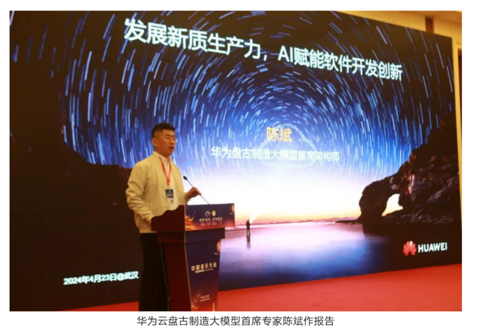 華為云盤古制造大模型首席專家陳斌作題為《發展新質生產力、AI賦能軟件開發創新》的報告?;仡櫫塑浖こ贪l展歷程,提出當前軟件行業面臨的瓶頸與挑戰以及AI賦能軟件開發,研發作業從代碼為中心走向模型為中心,從以人為主走向智能自主研發的智能化新階段。