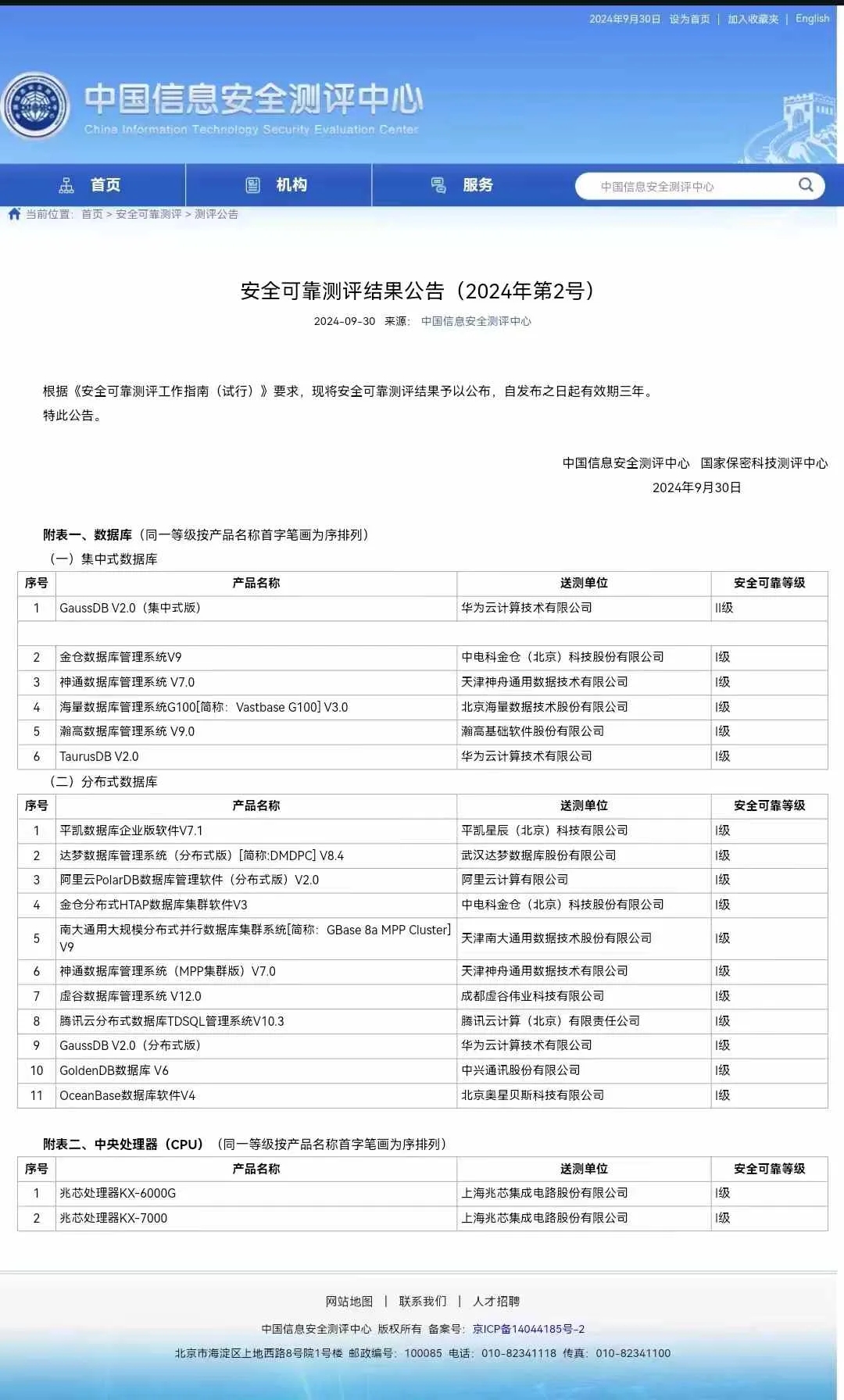 9月30日,中國信息安全測評中心、國家保密科技測評中心發(fā)布了《安全可靠測評結(jié)果公告(2024年第2號)》。神軟子公司神通公司的集中式數(shù)據(jù)庫產(chǎn)品神通數(shù)據(jù)庫管理系統(tǒng) V7.0、分布式數(shù)據(jù)庫產(chǎn)品神通數(shù)據(jù)庫管理系統(tǒng)(MPP集群版)V7.0通過測評,獲得安全可靠等級“I級”。