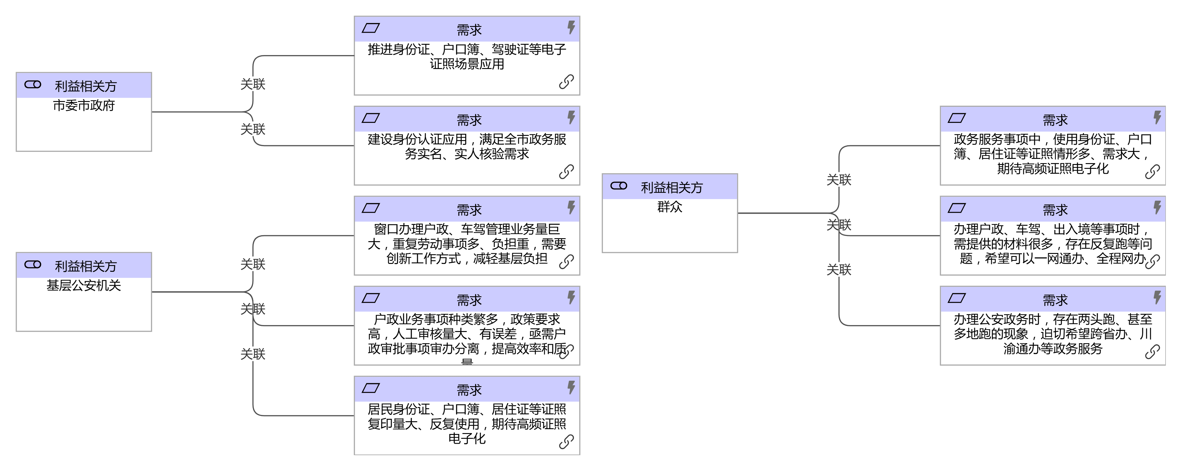 在“三張清單”中,需求分析是基礎(chǔ),聚焦于國家所需、群眾所盼、未來所向。要找準(zhǔn)最緊迫、最現(xiàn)實、最棘手的問題,作為改革的突破口。因此,重大需求清單與TOGAF框架中的利益相關(guān)者及需求分析視圖的含義十分契合。