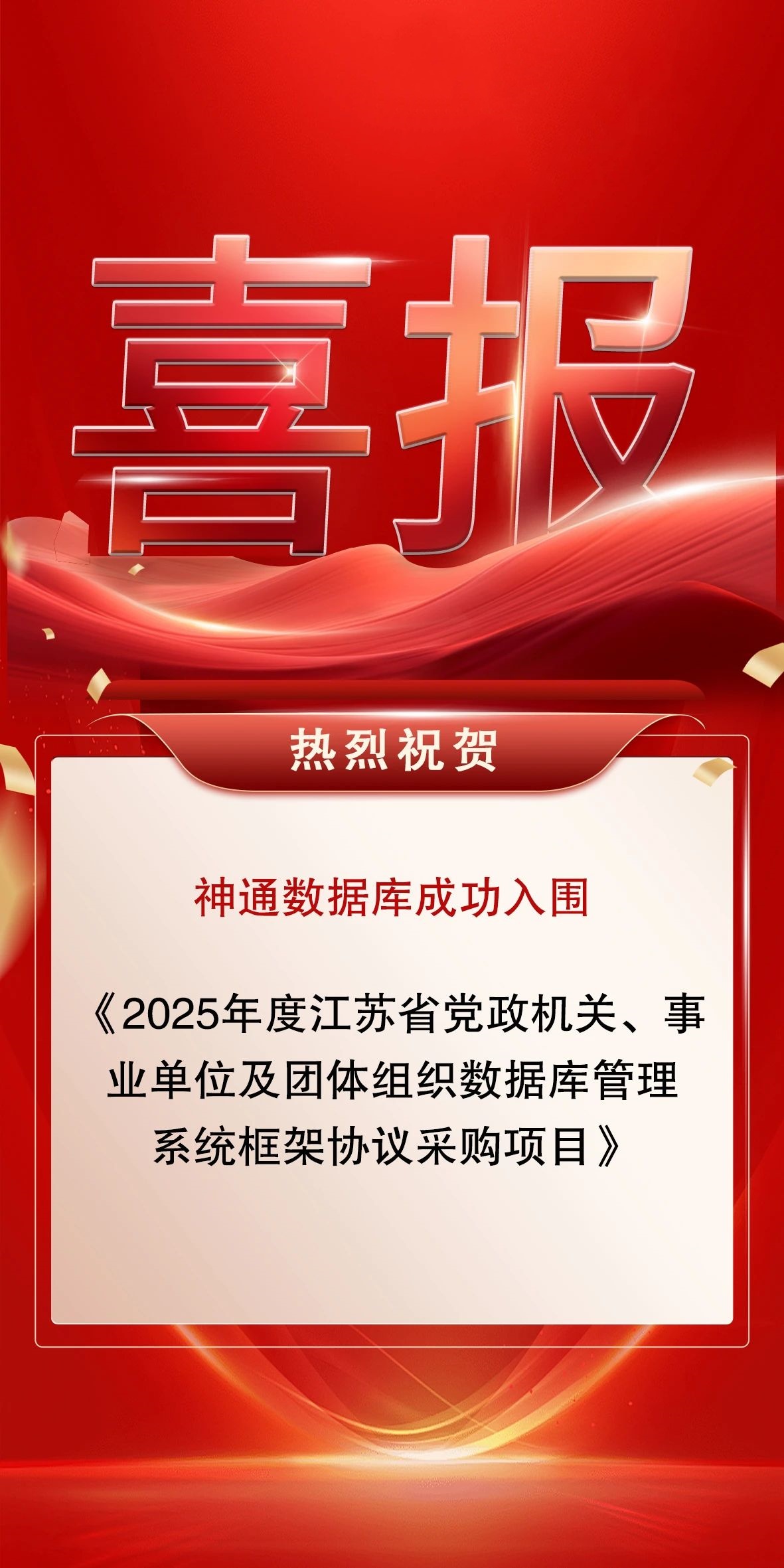 喜訊 神通數(shù)據(jù)庫入圍2025年度江蘇省黨政機關(guān)、事業(yè)單位及團體組織數(shù)據(jù)庫管理系統(tǒng)框架協(xié)議采購項目